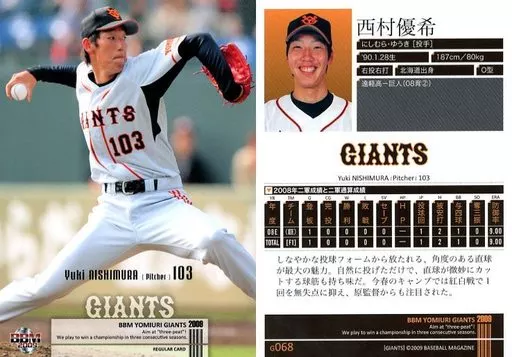 Nombre comercial en japonés: BBM/レギュラーカード/BBM 読売ジャイアンツ 2009 G068 [レギュラーカード] : 西村優希