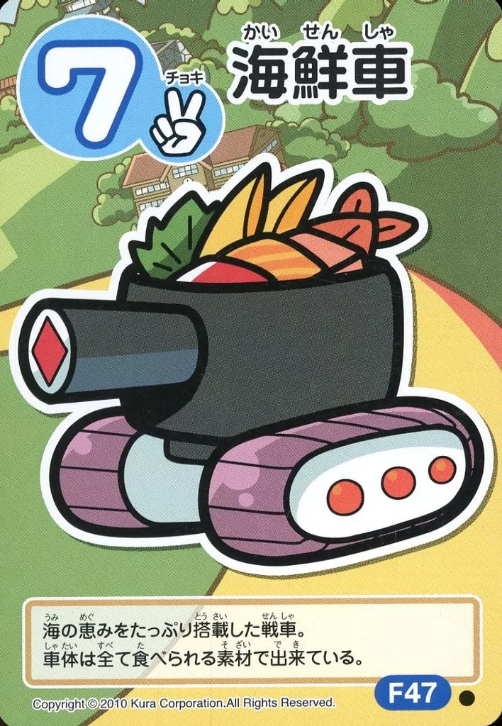 Nombre comercial en japonés: むてん丸カードゲーム/●/キャラカード/青/第六弾 ビッくらリーGP F47[●]:海鮮車
