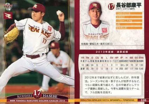 Nombre comercial en japonés: BBM/レギュラーカード/BBM2014 東北楽天ゴールデンイーグルス E08 [レギュラーカード] : 長谷部康平