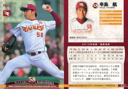 Nombre comercial en japonés: BBM/レギュラーカード/BBM2014 東北楽天ゴールデンイーグルス E27 [レギュラーカード] : 辛島航