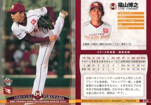 Nombre comercial en japonés: BBM/レギュラーカード/BBM2014 東北楽天ゴールデンイーグルス E32 [レギュラーカード] : 福山博之