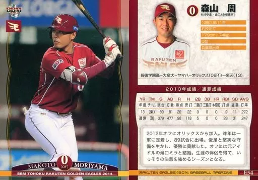 Nombre comercial en japonés: BBM/レギュラーカード/BBM2014 東北楽天ゴールデンイーグルス E54 [レギュラーカード] : 森山周