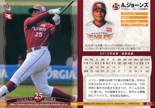 Nombre comercial en japonés: BBM/レギュラーカード/BBM2014 東北楽天ゴールデンイーグルス E57 [レギュラーカード] : ジョーンズ