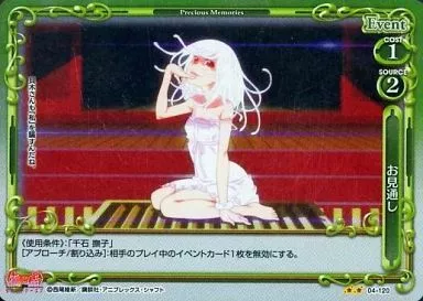 Nombre comercial en japonés: プレシャスメモリーズ/UC/イベント/緑/<物語>シリーズセカンドシーズン ブースターパック 04-120[UC]:(ホロ)お見通し
