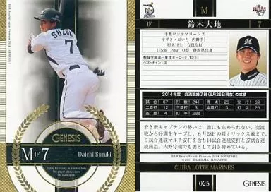 Nombre comercial en japonés: BBM/レギュラーカード/千葉ロッテマリーンズ/BBM2014 ベースボールカードプレミアム ジェネシス 025 [レギュラーカード] : 鈴木大地