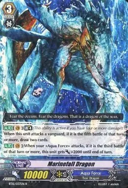 Nombre comercial en japonés: ヴァンガード/英語版/R/ノーマルユニット/アクアフォース/BT第15弾 Infinite Rebirth[無限転生] BT15/037EN[R]:Marinefall Dragon/マリンフォール・ドラゴン