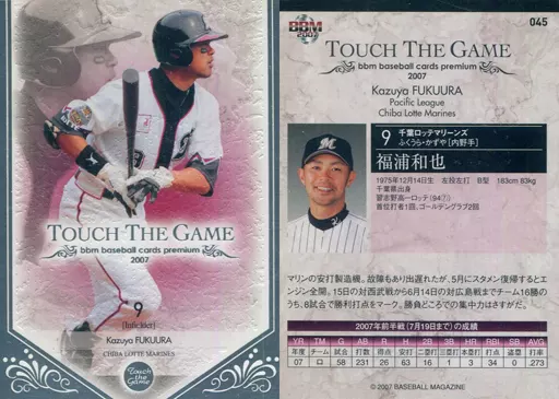 Nombre comercial en japonés: BBM/レギュラーカード/千葉ロッテマリーンズ/BBM2007 タッチ・ザ・ゲーム 045 [レギュラーカード] : 福浦和也