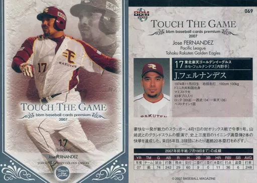 Nombre comercial en japonés: BBM/レギュラーカード/東北楽天ゴールデンイーグルス/BBM2007 タッチ・ザ・ゲーム 069 [レギュラーカード] : フェルナンデス