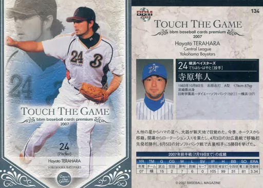 Nombre comercial en japonés: BBM/レギュラーカード/横浜ベイスターズ/BBM2007 タッチ・ザ・ゲーム 134 [レギュラーカード] : 寺原隼人
