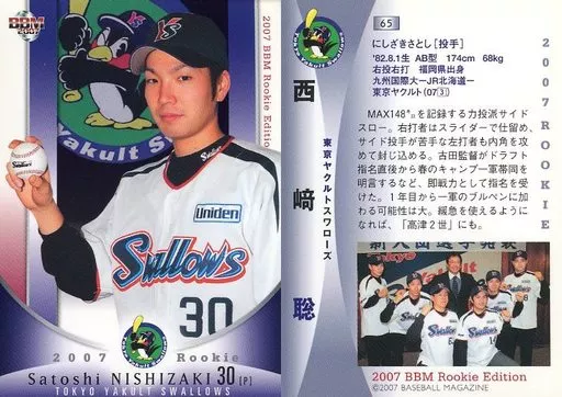 Nombre comercial en japonés: BBM/レギュラーカード/東京ヤクルトスワローズ/BBM2007 ルーキーエディション 65 [レギュラーカード] : 西崎聡