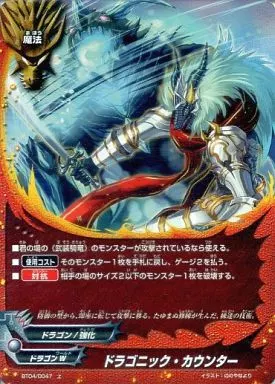 Nombre comercial en japonés: バディファイト/上/魔法/ドラゴンW/[BF-BT04]ブースターパック第4弾「轟斬轟く!!」 BT04/0047[上]:ドラゴニック・カウンター(ガチレア仕様)