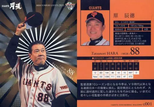Nombre comercial en japonés: BBM/レギュラーカード/BBM2013 読売ジャイアンツ G001 [レギュラーカード] : 原辰徳(キラパラレル版)