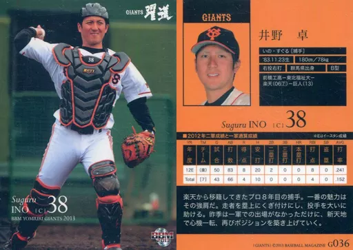 Nombre comercial en japonés: BBM/レギュラーカード/BBM2013 読売ジャイアンツ G036 [レギュラーカード] : 井野卓