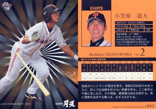 Nombre comercial en japonés: BBM/レギュラーカード/BBM2013 読売ジャイアンツ G043 [レギュラーカード] : 小笠原道大(キラパラレル版)