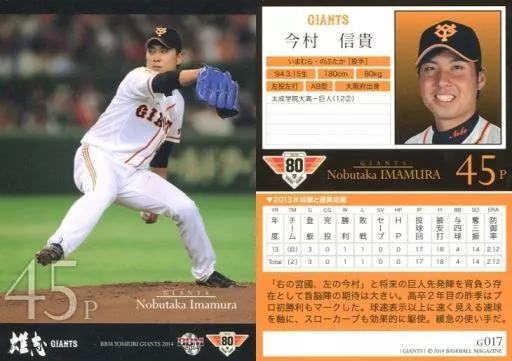 Nombre comercial en japonés: BBM/レギュラーカード/BBM2014 読売ジャイアンツ G017 [レギュラーカード] : 今村信貴