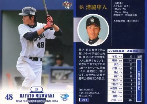 Nombre comercial en japonés: BBM/レギュラーカード/BBM2014 中日ドラゴンズ D54 [レギュラーカード] : 溝脇隼人