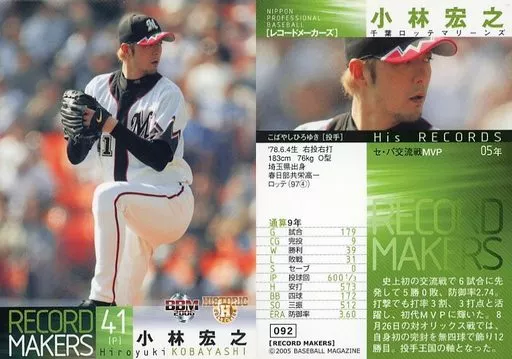 Nombre comercial en japonés: BBM/レギュラーカード/現役選手/千葉ロッテマリーンズ/BBM2006 ヒストリックコレクション レコードメーカーズ 092 [レギュラーカード] : 小林宏之