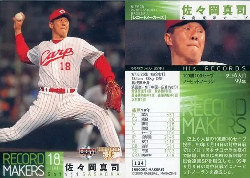 Nombre comercial en japonés: BBM/レギュラーカード/現役選手/広島東洋カープ/BBM2006 ヒストリックコレクション レコードメーカーズ 134 [レギュラーカード] : 佐々岡真司
