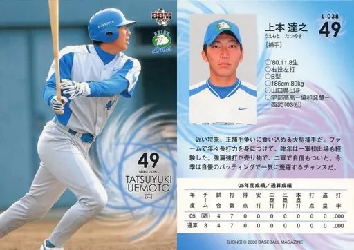 Nombre comercial en japonés: BBM/レギュラーカード/BBM2006 西武ライオンズ L38 [レギュラーカード] : 上本達之