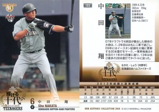 Nombre comercial en japonés: BBM/レギュラーカード/北海道日本ハムファイターズ/BBM2014 ヒストリックコレクション 輝ける十代 105 [レギュラーカード] : 中田翔