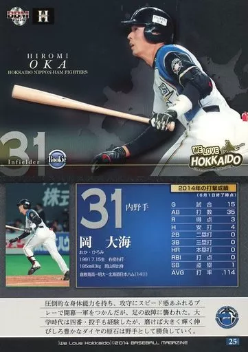 Nombre comercial en japonés: BBM/レギュラーカード/BBM2014 北海道日本ハムファイターズカードセット WE LOVE HOKKAIDO 25 [レギュラーカード] : 岡大海