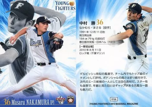 Nombre comercial en japonés: BBM/レギュラーカード/BBM2013 北海道日本ハムファイターズ YOUNG FIGHTERS YF06 [レギュラーカード] : 中村勝