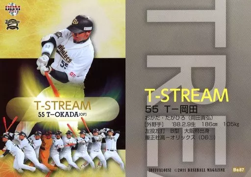 Nombre comercial en japonés: BBM/レギュラーカード/T-STREAM/BBM2011 オリックス・バファローズ Bs87 [レギュラーカード] : T-岡田