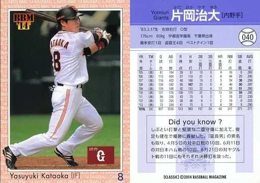 Nombre comercial en japonés: BBM/レギュラーカード/現役レギュラー/読売ジャイアンツ/BBM2014 ベースボールカードクラシック 040 [レギュラーカード] : 片岡治大