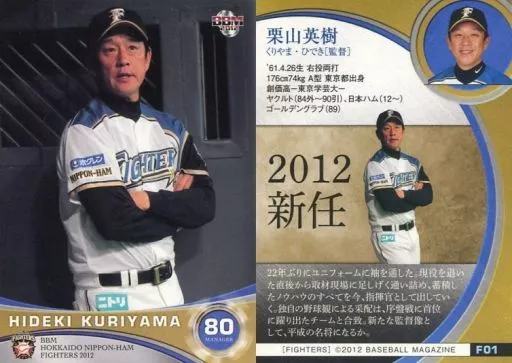 Nombre comercial en japonés: BBM/レギュラーカード/BBM2012 北海道日本ハムファイターズ F01 [レギュラーカード] : 栗山英樹