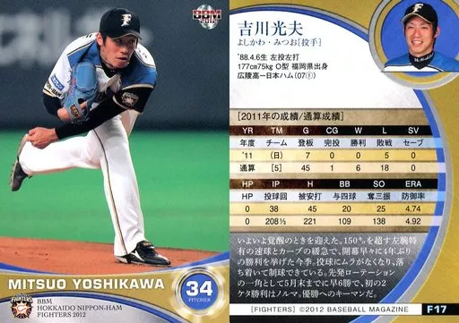 Nombre comercial en japonés: BBM/レギュラーカード/BBM2012 北海道日本ハムファイターズ F17 [レギュラーカード] : 吉川光夫