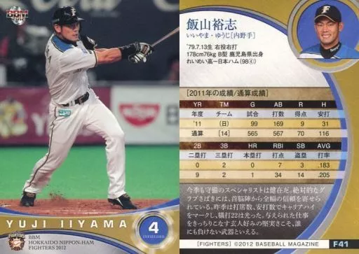 Nombre comercial en japonés: BBM/レギュラーカード/BBM2012 北海道日本ハムファイターズ F41 [レギュラーカード] : 飯山裕志