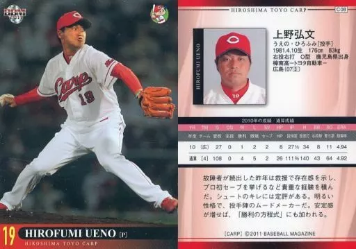 Nombre comercial en japonés: BBM/レギュラーカード/BBM2011 広島東洋カープ C08 [レギュラーカード] : 上野弘文(キラパラレル版)