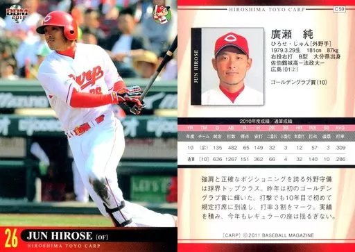 Nombre comercial en japonés: BBM/レギュラーカード/BBM2011 広島東洋カープ C59 [レギュラーカード] : 廣瀬純