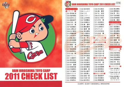 Nombre comercial en japonés: BBM/レギュラーカード/チェックリスト/BBM2011 広島東洋カープ C78 [レギュラーカード] : チェックリスト