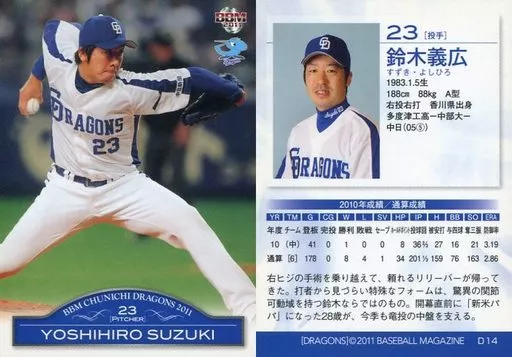Nombre comercial en japonés: BBM/レギュラーカード/BBM2011 中日ドラゴンズ D14 [レギュラーカード] : 鈴木義広