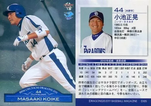 Nombre comercial en japonés: BBM/レギュラーカード/BBM2011 中日ドラゴンズ D65 [レギュラーカード] : 小池正晃(パラレル版)