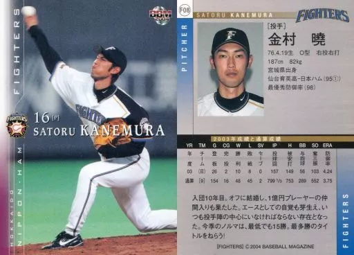 Nombre comercial en japonés: BBM/レギュラーカード/BBM2004 北海道日本ハムファイターズ F8 [レギュラーカード] : 金村暁
