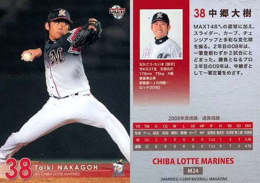 Nombre comercial en japonés: BBM/レギュラーカード/BBM2009 千葉ロッテマリーンズ M24 [レギュラーカード] : 中郷大樹