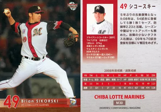 Nombre comercial en japonés: BBM/レギュラーカード/BBM2009 千葉ロッテマリーンズ M30 [レギュラーカード] : シコースキー