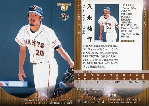 Nombre comercial en japonés: BBM/レギュラーカード/読売ジャイアンツ/BBM2015 ヒストリックコレクション 思い出のユニフォーム 005 [レギュラーカード] : 入来祐作