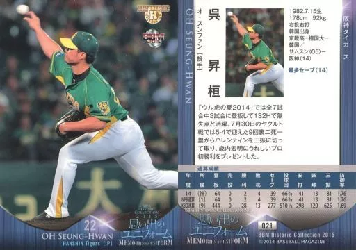 Nombre comercial en japonés: BBM/レギュラーカード/阪神タイガース/BBM2015 ヒストリックコレクション 思い出のユニフォーム 021 [レギュラーカード] : 呉昇桓