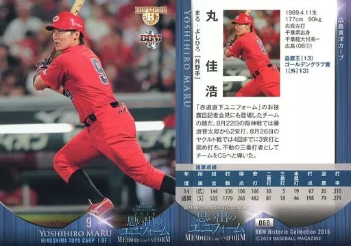 Nombre comercial en japonés: BBM/レギュラーカード/広島東洋カープ/BBM2015 ヒストリックコレクション 思い出のユニフォーム 060 [レギュラーカード] : 丸佳浩