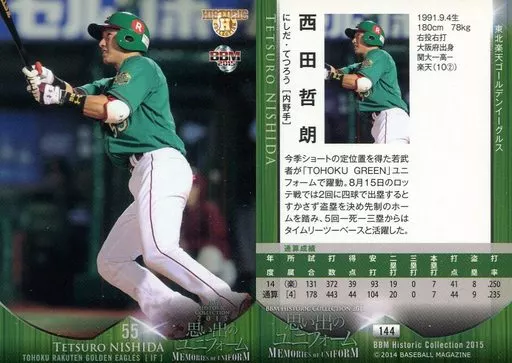 Nombre comercial en japonés: BBM/レギュラーカード/東北楽天ゴールデンイーグルス/BBM2015 ヒストリックコレクション 思い出のユニフォーム 144 [レギュラーカード] : 西田哲朗