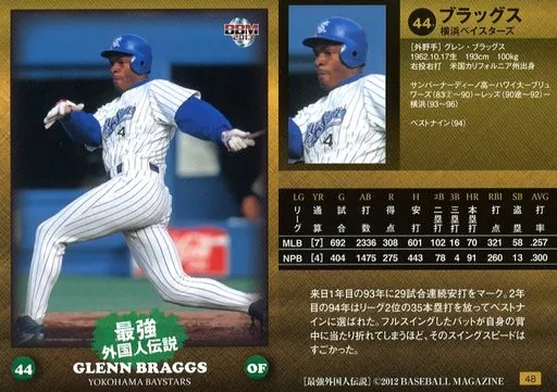 Nombre comercial en japonés: BBM/レギュラーカード/横浜ベイスターズ/BBM2013 最強外国人伝説 48 [レギュラーカード] : ブラッグス