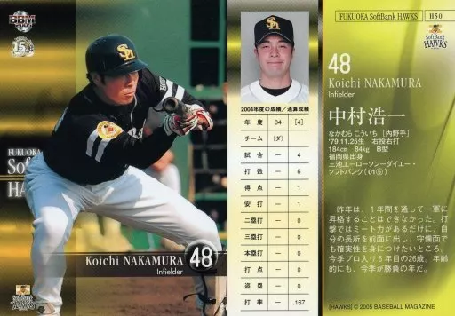 Nombre comercial en japonés: BBM/レギュラーカード/BBM2005 福岡ソフトバンクホークス H50 [レギュラーカード] : 中村浩一