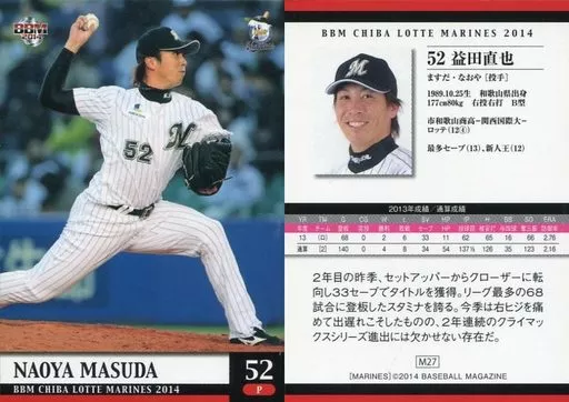 Nombre comercial en japonés: BBM/レギュラーカード/BBM2014 千葉ロッテマリーンズ M27[レギュラーカード]:益田直也