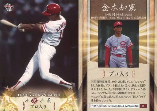 Nombre comercial en japonés: BBM/レギュラーカード/広島東洋カープ/BBM2012 金本知憲メモリアルベースボールカードセット「不撓不屈」 01 [レギュラーカード] : プロ入り