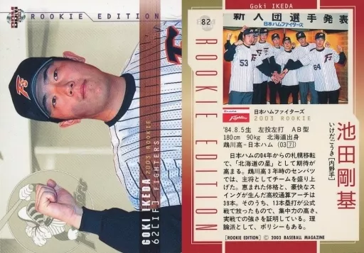 Nombre comercial en japonés: BBM/レギュラーカード/日本ハムファイターズ/BBM2003 ルーキーエディション 082 [レギュラーカード] : 池田剛基