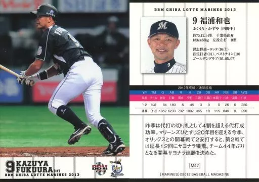 Nombre comercial en japonés: BBM/レギュラーカード/BBM2013 千葉ロッテマリーンズ M47 [レギュラーカード] : 福浦和也