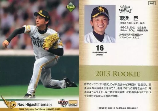 Nombre comercial en japonés: BBM/レギュラーカード/BBM2013 福岡ソフトバンクホークス H05 [レギュラーカード] : 東浜巨